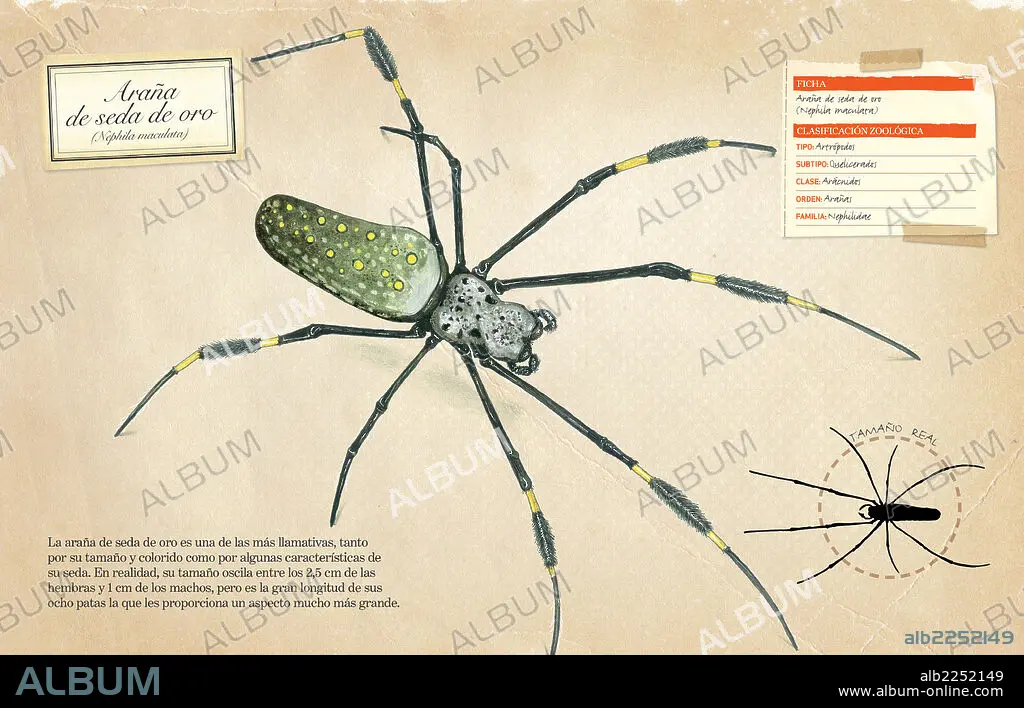 Fact sheet and zoological classification of Golden Silk orb-weaver (Nephila maculata).