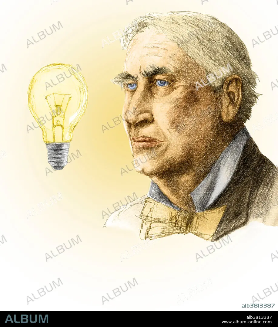 Color enhanced illustration of Thomas Alva Edison (1847-1931) who was an American inventor, famous for inventing or improving devices such as the phonograph and the electric light bulb. Edison was one of the first inventors to build research laboratories to make and develop inventions. He also founded several companies, and filed over 1000 patents. Other work included improvements to telegraphy, cameras, and motion picture cameras, as well as promoting his DC electrical distribution systems. He also discovered the Edison Effect, on which thermionic valves are based.