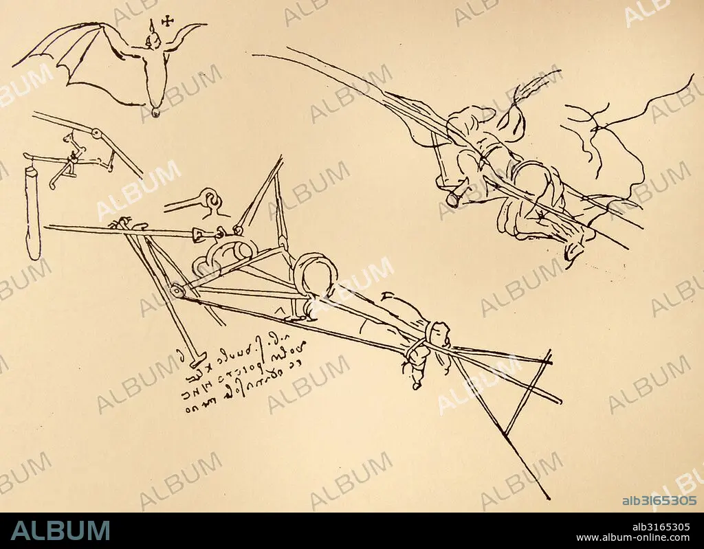 Caption: Leonardo da Vinci's (1452-1519) sketch for an Ornithopter.