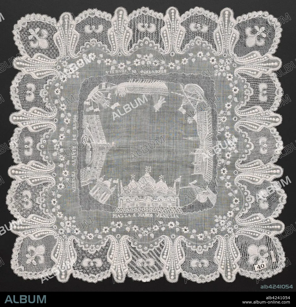Caption: Embroidered Handkerchief, 1800s. Italy, 19th century. Embroidered linen; overall: 47 x 47 cm (18 1/2 x 18 1/2 in.).