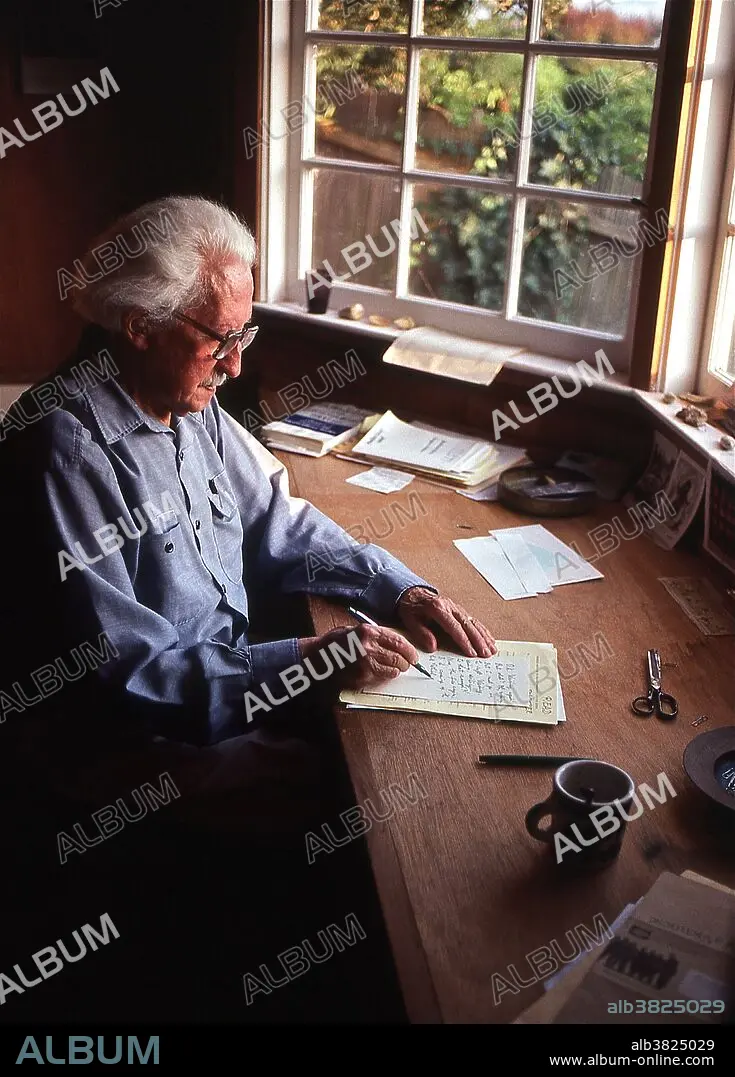 Caption: The developmental psychologist and psychoanalyst Erik Erikson (1902 - 1994) in Tiburon, California in 1973. Erikson is known for his theory of personality, which added three further stages of development to Freud's five; and for coining the phrase "identity crisis."