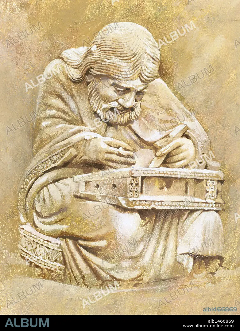 Caption: Pythagoras of Samos (c. 570-c. 495 b.C.). Ionian Greek philosopher, mathematician, and founder of the religious movement called Pythagoreanism. Portrait.