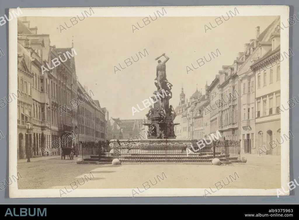 Herkulesbrunnen in Ausburg, Augsburg, Maximilianstrasse, Herkulesbrunnen (title on object), Ferdinand Brauer (mentioned on object), Adriaen de Vries, Augsburg, 1855 - 1885, paper, cardboard, albumen print, height 65 mm × width 96 mm