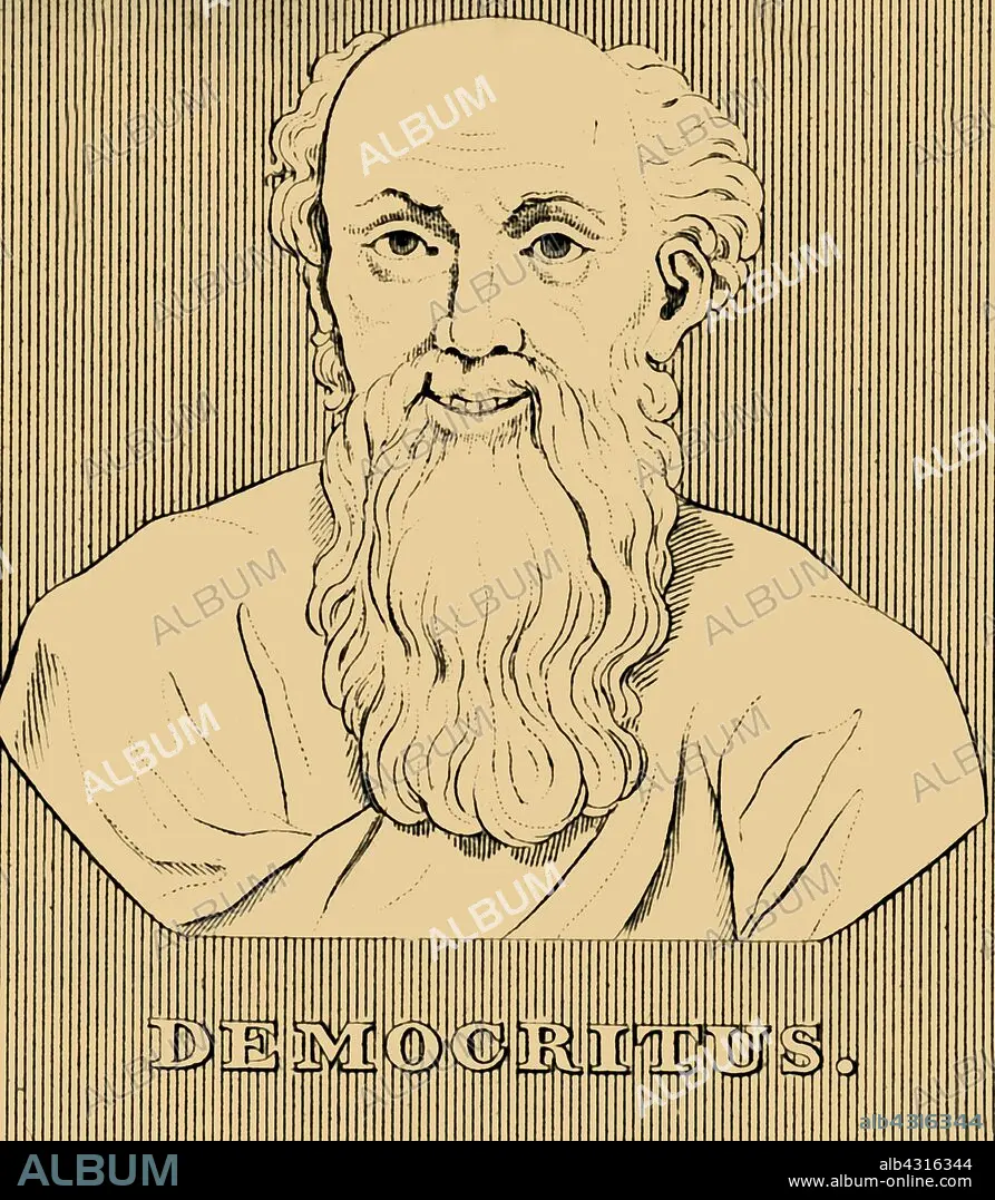 Caption: 'Democritus', (c460-370 BC), 1830. Democritus (c460-370 BC) Ancient Greek pre-Socratic philosopher remembered for his formulation of atomic theory of the universe. From "Biographical Illustrations", by Alfred Howard. [Thomas Tegg, R. Griffin and Co., J. Cumming, London, Glasgow and Dublin, 1830]