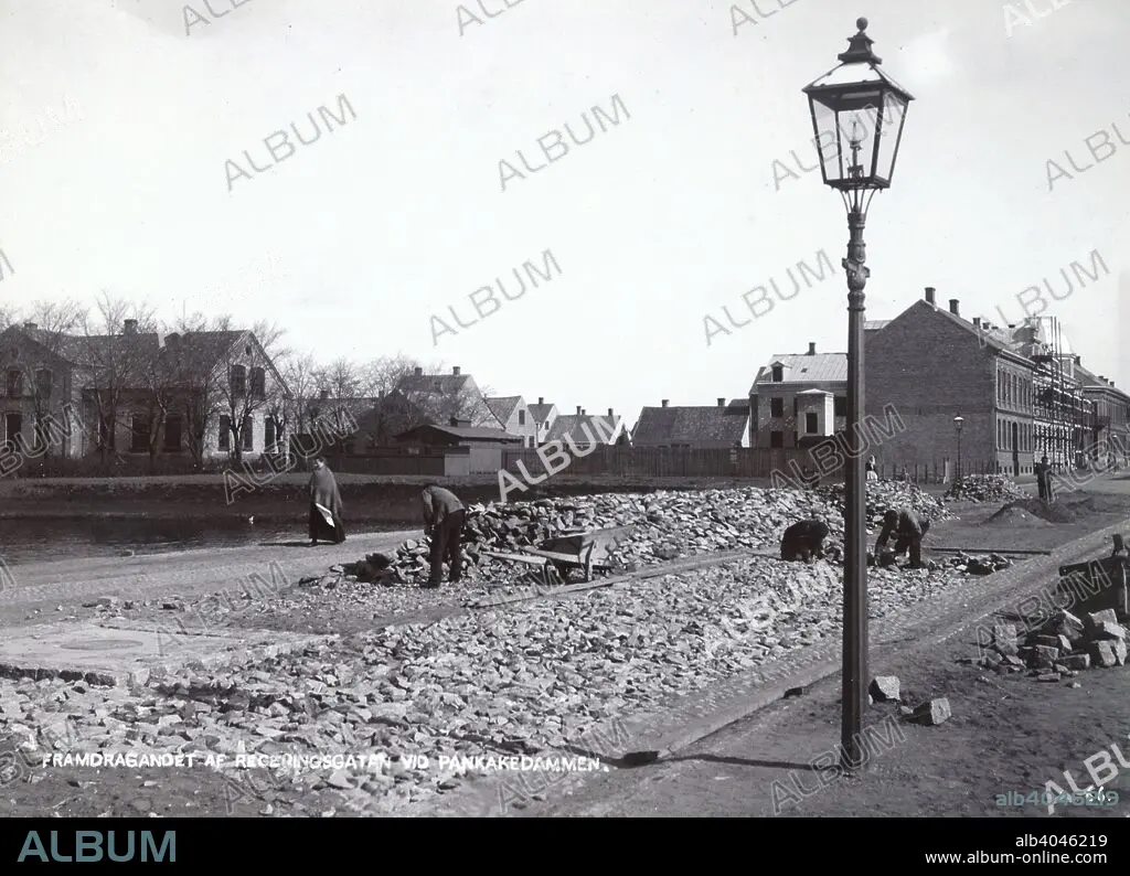 Caption: A new road being built, Landskrona, Sweden, 1900. This picture was photographed by Borg Mesch (1869-1956) who had a studio at Landskrona until 1899, when he moved to Kiruna, Lapland. He is known as one of the first documentary photogaphers in Sweden. From the Landskrona Museum Collection.