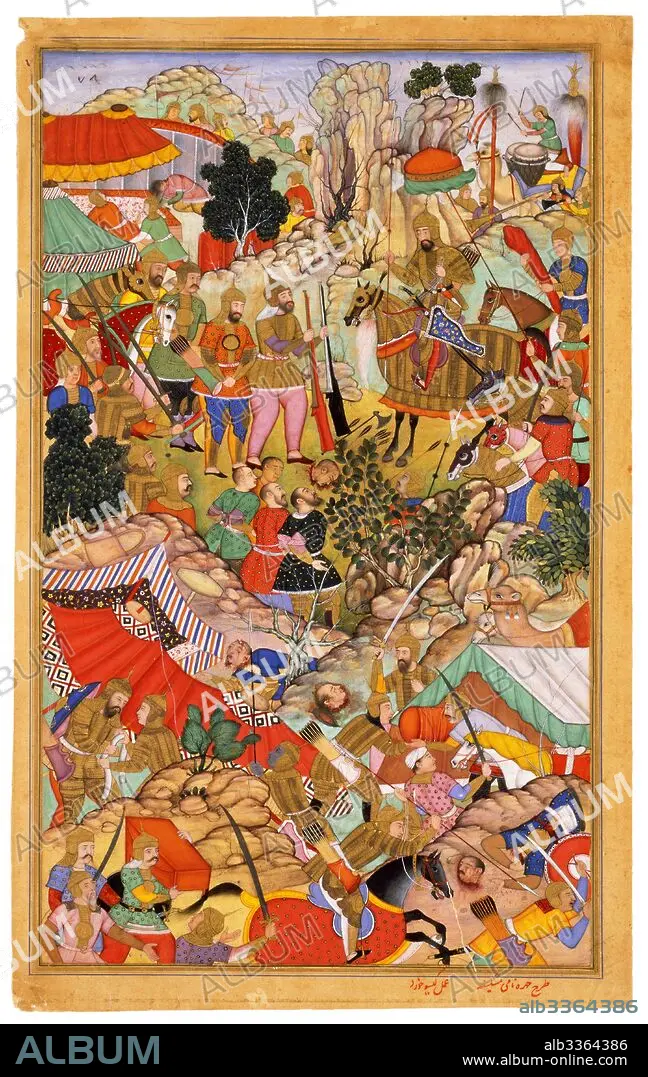 MISKINA. Tayang Khan Presented with the Head of the Mongol Leader Ong Khan. Miniature from Jami' al-tawarikh (Universal History).