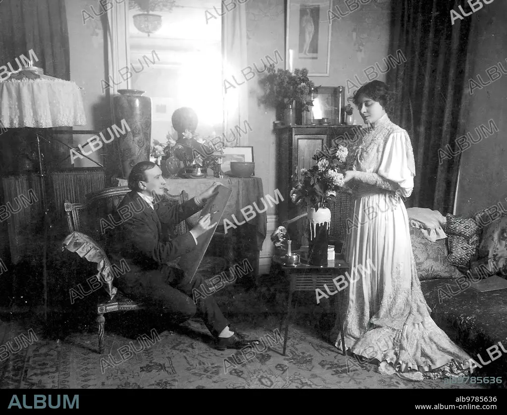 April 1911. Notable author and cartoonist: the famous dramatic author Frances Henri Bataille Portraying the notable actress Berta Bady