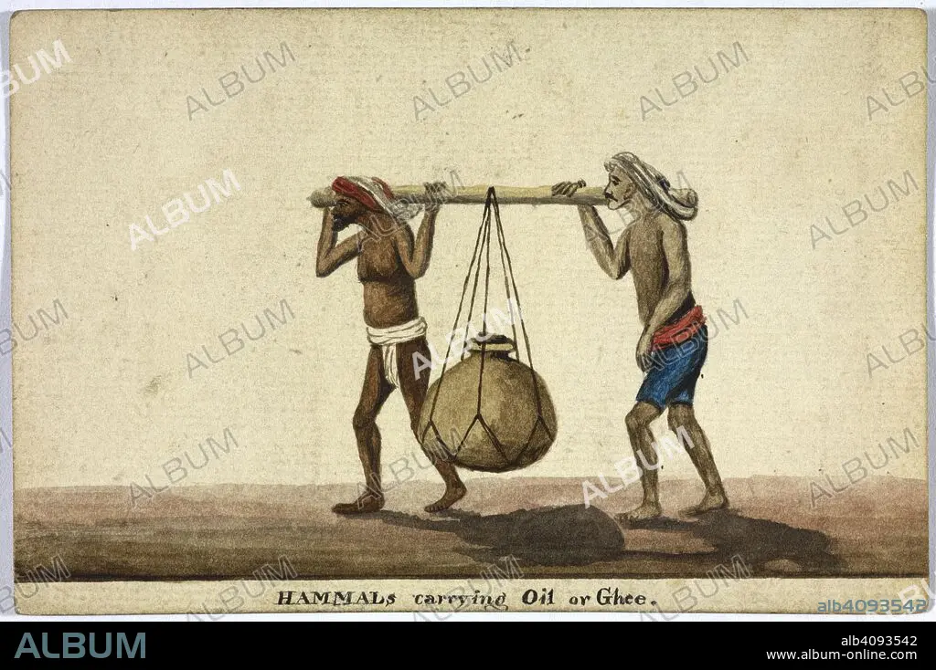 Hammals carrying oil or ghee. Bombay Views and Costume. 1810-11. India. Source: WD 315 no.78.