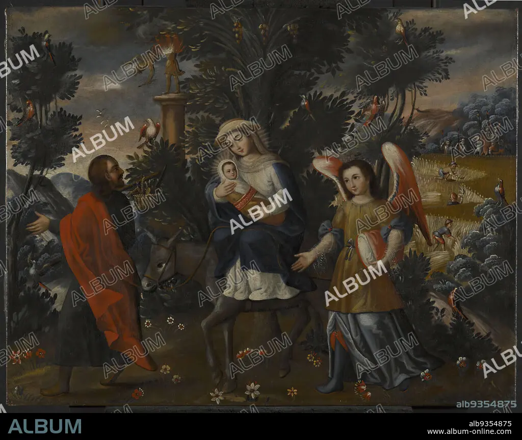Caption: The Flight Into Egypt, Cuzco School, Oil on canvas, Peru, mid-18th century, 23 1/4 x 29 3/4in., 59.1 x 75.6cm, painting