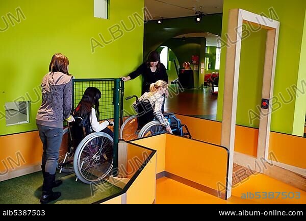 Haus der Natur museum, wheelchair course, where visitors can have the experience of moving about in a wheelchair, technology department, Salzburg, Austria, Europe.