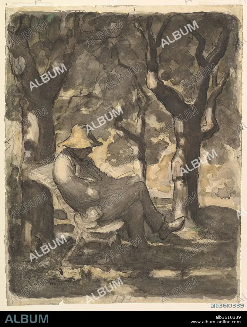 A Man Reading in a Garden (recto); Preliminary sketch for a Man Reading in a Garden (verso). Artist: Honoré Daumier (French, Marseilles 1808-1879 Valmondois). Dimensions: 13 5/16 x 10 5/8 in. (33.8 x 27cm). Date: ca. 1865.