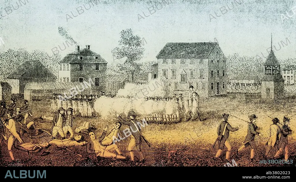 Caption: The Battles of Lexington and Concord, fought on April 19, 1775, were the first military engagements of the American Revolutionary War. The battles marked the outbreak of open armed conflict between the Kingdom of Great Britain and its thirteen colonies in the mainland of British North America. The first shots were fired just as the sun was rising at Lexington. The militia were outnumbered and fell back, and the regulars proceeded on to Concord, where they searched for the supplies. At the North Bridge in Concord, approximately 500 militiamen fought and defeated three companies of the King's troops. The outnumbered regulars fell back from the minutemen after a pitched battle in open territory.