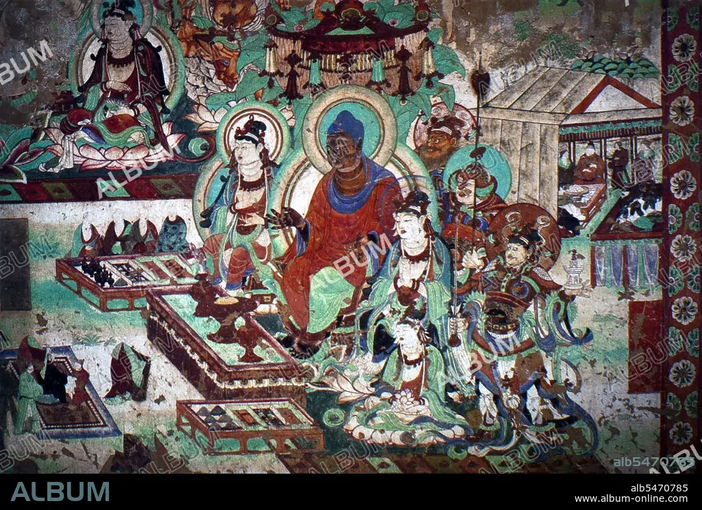 Title: A scene from the Maitreya Sutra, Cave 25, Yulin Caves, Tang Dynasty.