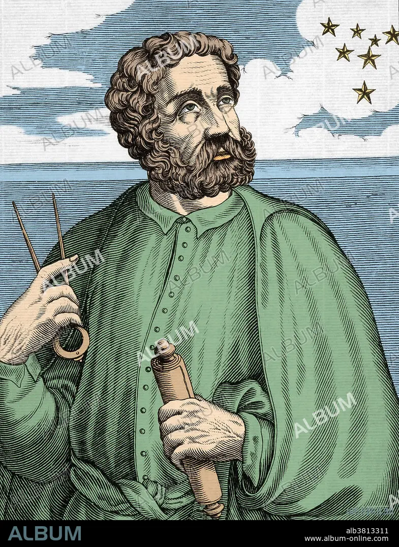 Caption: Ferdinand Magellan (c.1480-1521), Portuguese navigator and explorer. Magellan is most famous for heading the first expedition to eventually circumnavigate the world. Magellan set sail from Seville, Spain, in August 1519 intending to sail west until he arrived in India, avoiding Portuguese-controlled waters to the east. After crossing the stretch of water below South America, now known as the Strait of Magellan, the fleet struck out across a vast ocean, which Magellan called the Pacific because of its calmness. Over 100 days later they reached the Philippines, where Magellan was killed during a squabble with natives. Only one ship made it back to Spain, arriving in September 1522.