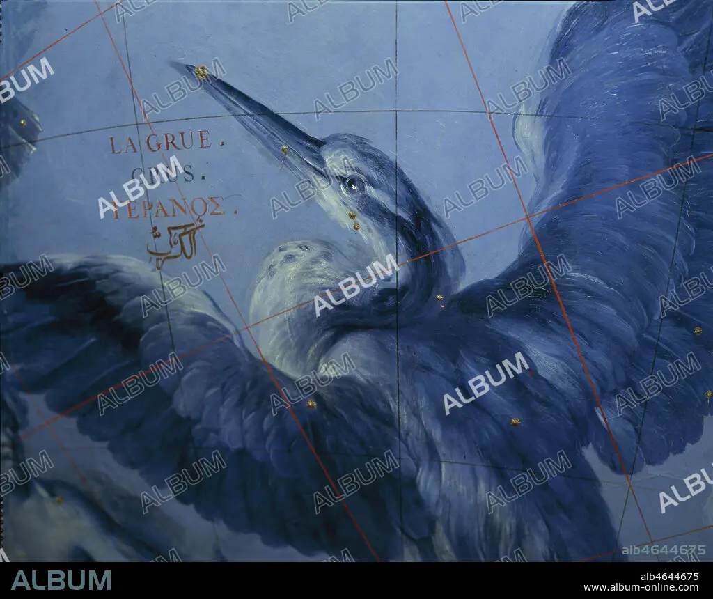Constellation de la Grue sur le globe celeste de CORONELLI Vincenzo (1650-1718) offert a Louis XIV en 1683. Credit: Larrieu-Licorne/KHARBINE-TAPABOR.
