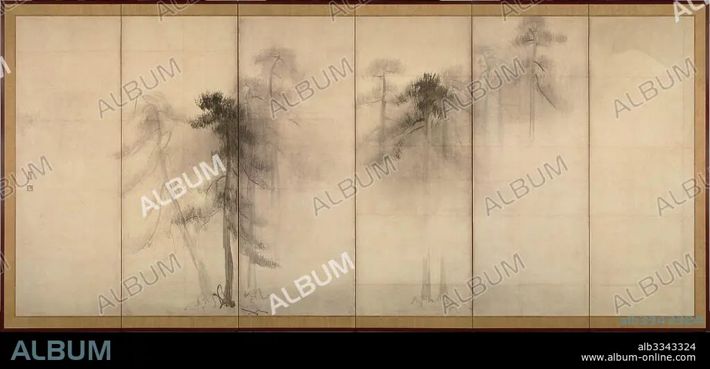 Caption: Pine Trees (Left of a pair of six-section folding screens)