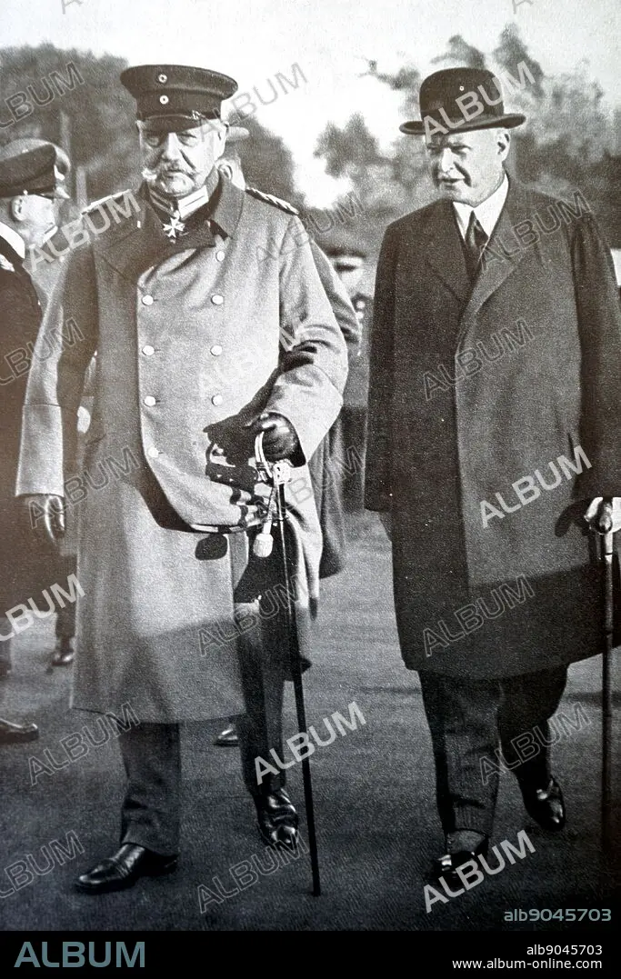 Caption: Photograph of Paul Von Hindenburg and Theodor Lewaldat meeting regarding the 1932 Olympics held in LA. Paul Von Hindenburg (1847-1934) a German military officer, statesman, politician and President of Germany. Theodor Lewaldat (1860-1947) a Civil Servant in the German Reich and an executive of the International Olympic Committee. Dated 20th Century.