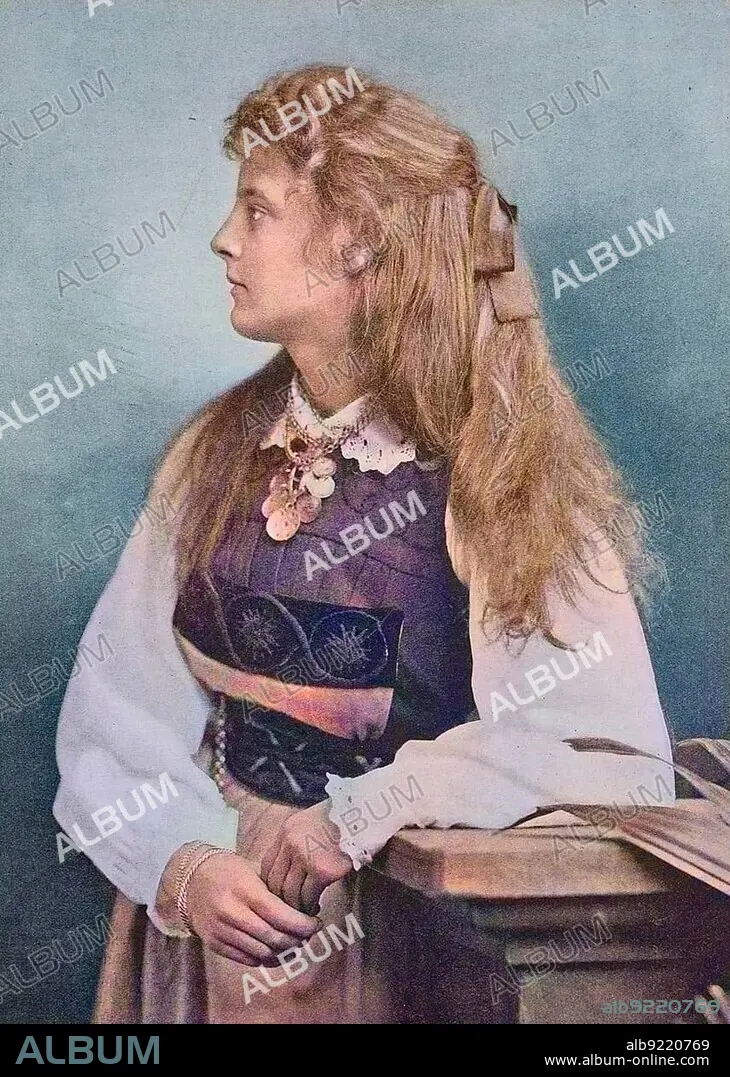 Caption: Swedish girl with long blond hair and typical clothes in 1880, Sweden, Historic, digitally restored reproduction of a 19th century original, Europe