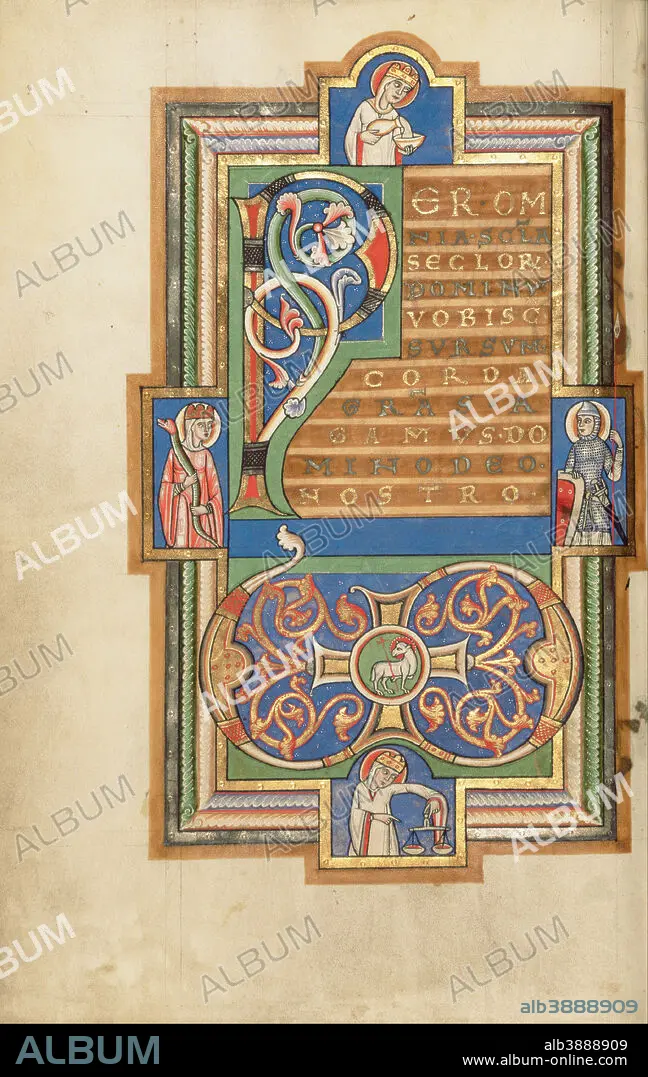 Caption: Decorated Incipit Page with a VD Monogram. Date/Period: Probably 1170s. Folio. Tempera colors, gold leaf, silver leaf, and ink on parchment. Height: 282 mm (11.10 in); Width: 189 mm (7.44 in).