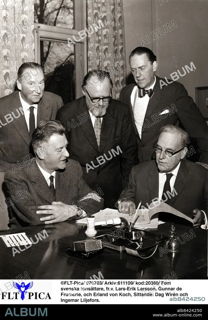 ©FLT-Pica/ 970703/ Arkiv:611109/ kod:20360/ Fem svenska tonsättare, fr.v. Lars-Erik Larsson, Gunnar de Frumerie, och Erland von Koch, Sittande: Dag Wirén och Ingemar Liljefors.