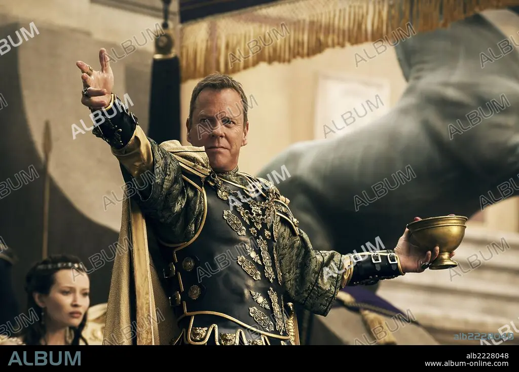 EMILY BROWNING and KIEFER SUTHERLAND in POMPEII, 2014, directed by PAUL W. S. ANDERSON. Copyright CONSTANTIN FILM PRODUKTION.