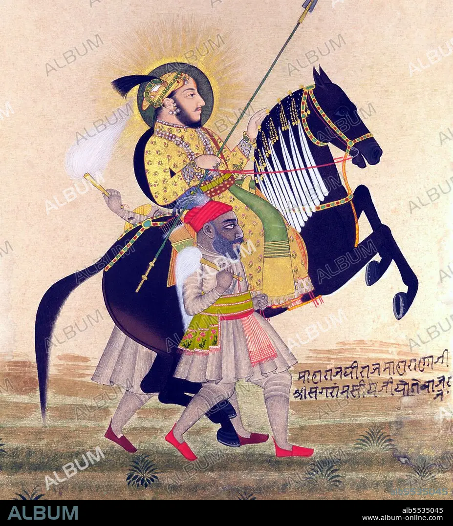 Title: India: Painting of Maharana Sangram Singh, Maharana of Mewar (1484-1527) on horseback,18th century.