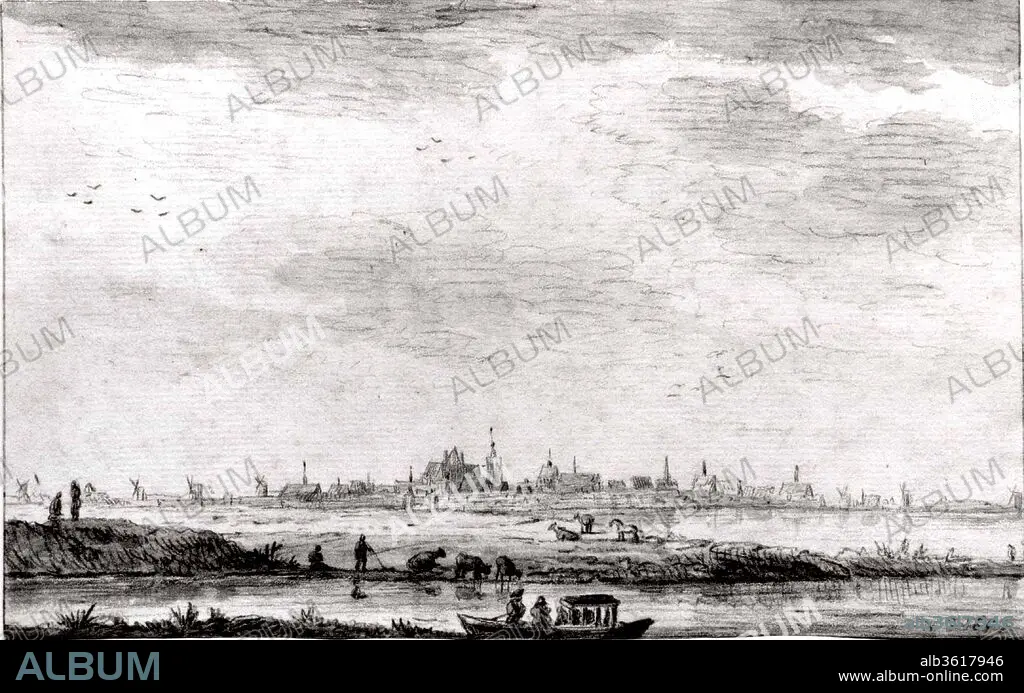 Distant Town Seen across Water and Fields. Artist: Style of Jan van Goyen (Dutch, Leiden 1596-1656 The Hague). Dimensions: 5 1/4 x 8 3/8 in. (13.4 x 21.2 cm). Date: 1652.