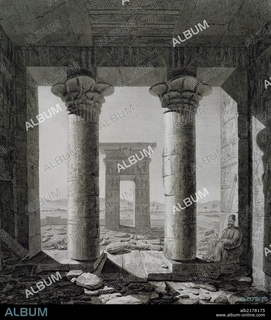Caption: The Temple of Dendur, 1842-1845, engraving from Denkmaeler aus und Aegypten Aethiopien (Monuments from Egypt and Ethiopia), by Karl Richard Lepsius. 19th century.
