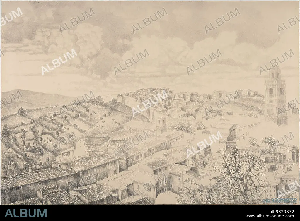 Roofs in Perugia, Alberto Tutino, 1933, drawing, 1933, Belgian Art.