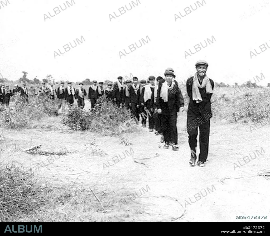 Title: Tuol Sleng (S 21) Prison: Mam Nay, Senior Khmer Rouge interrogator at Tuol Sleng, leads a file of Khmer Rouge cadre.