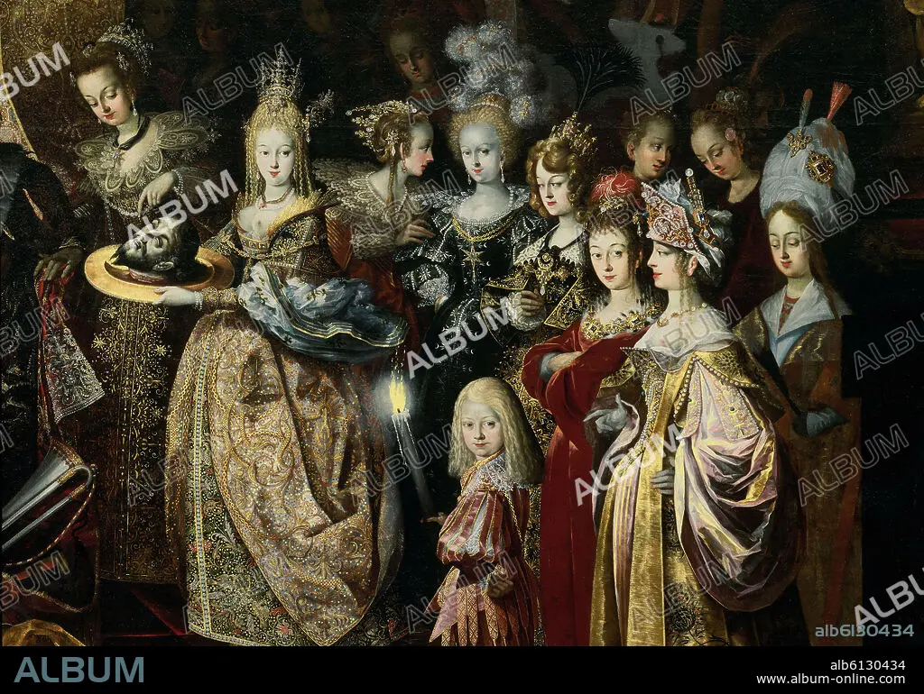 BARTHOLOMÄUS STROBEL THE YOUNGER. DEGOLLACION DE SAN JUAN BAUTISTA Y BANQUETE DE HERODES - DETALLE DERECHO: SALOME CON LA CABEZA DEL BAUTISTA - 1630/1633 - NP 1940 - CONJUNTO 236010