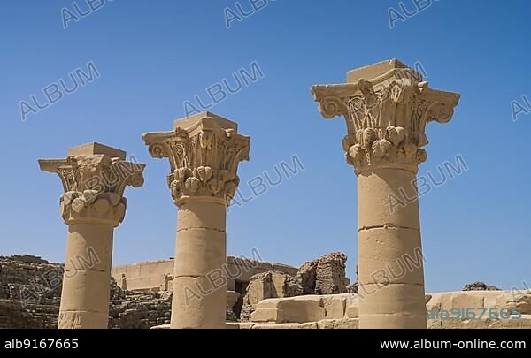 Columns with Corinthian capitals, Temple of Hathor, Dendera, Qina, Egypt