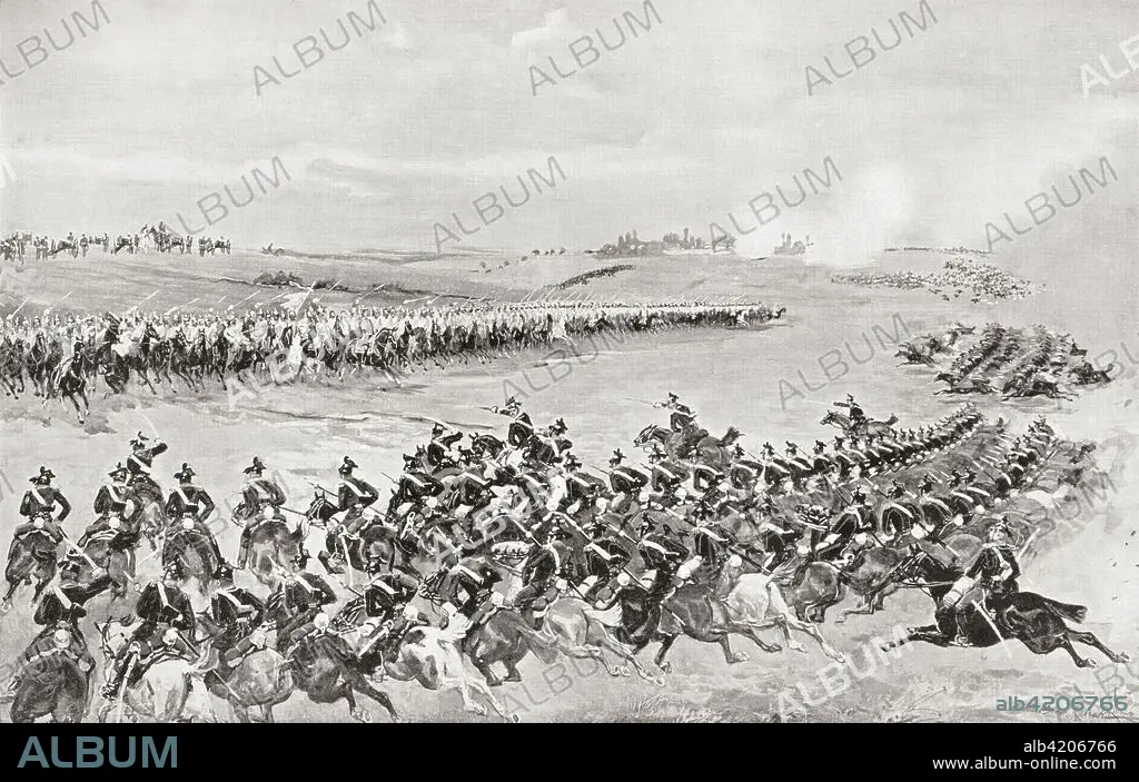 Caption: Prussian and Austrian cavalry at The Battle of Königgrätz, also known as the Battle of Sadowa, Sadová, or Hradec Králove, 3rd July, 1866. It was the decisive battle of the Austro-Prussian War, and resulted in the defeat of the Austrian Empire by the Kingdom of Prussia. From Hutchinson's History of the Nations, published 1915.