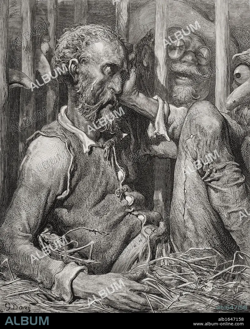 Engraving by Gustave Dore 1832-1883 French artist and illustrator of The Enchantment of Don Quixote from Don Quixote by Miguel de Cervantes Saavedra Chapter 42 and 43.