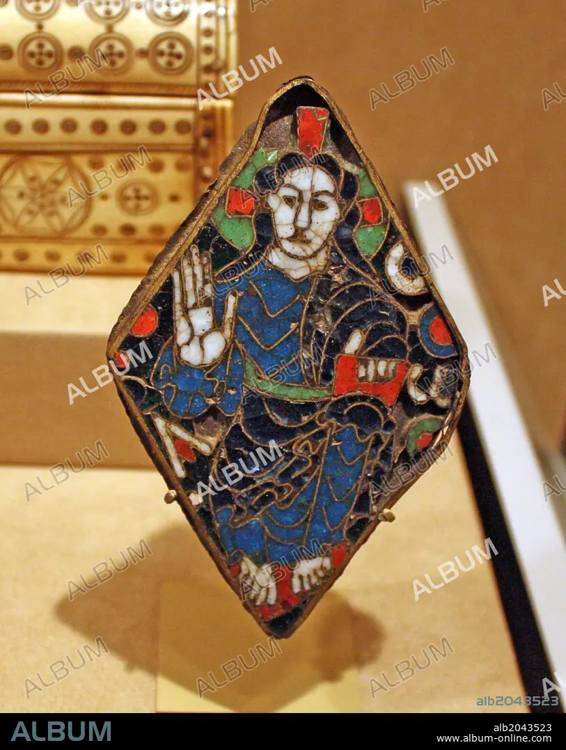 Roundel with a Personification of the Moon. Copper alloy, iron and cloisonne enamel Carolingian. Made about 860-90, probably in south central France.
