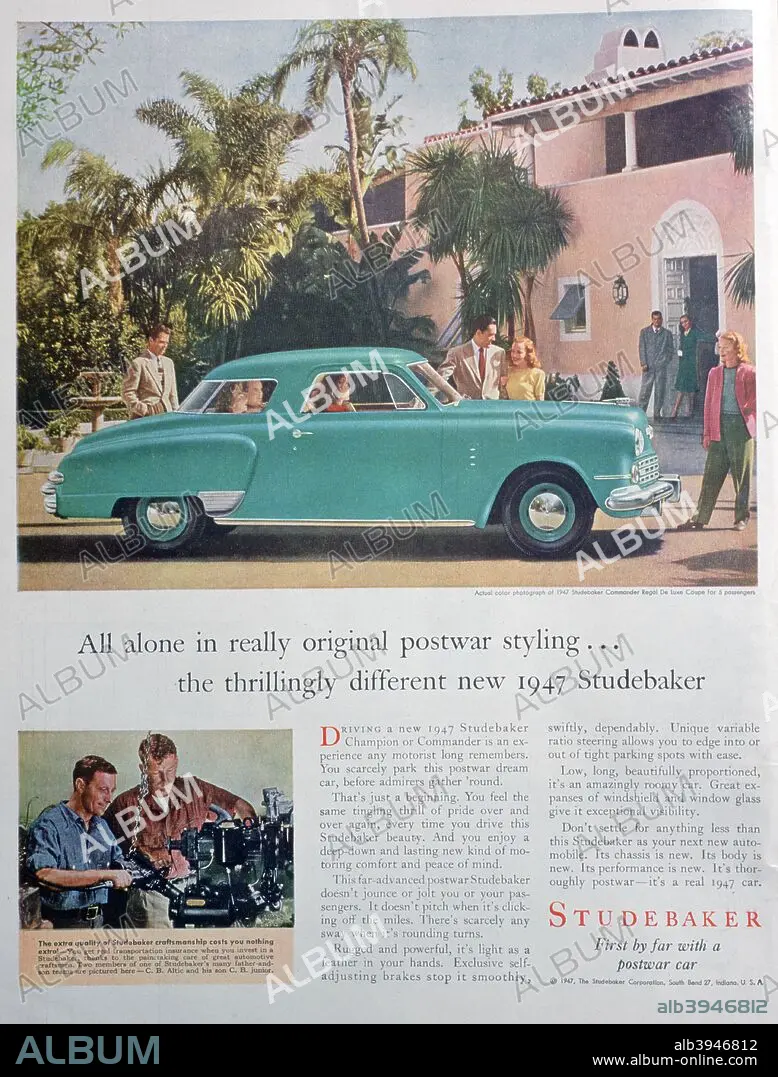 Caption: Studebaker car advert, 1947. Rights information: Cleared for Editorial Use Only. Please Contact Us For Any Other Clearance Rights