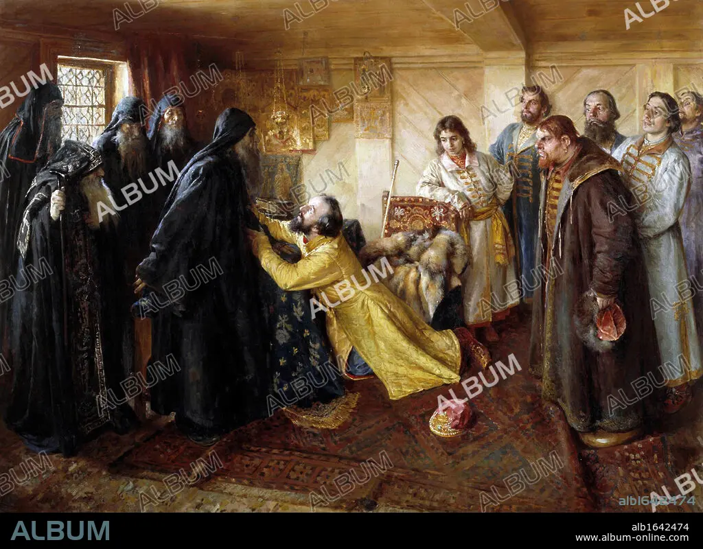Caption: Ivan the Terrible begs to become a Monk by K Lebedev. Ivan IV 'the Terrible' (1530 - 1584) Tsar of Russia 1533 - 1584