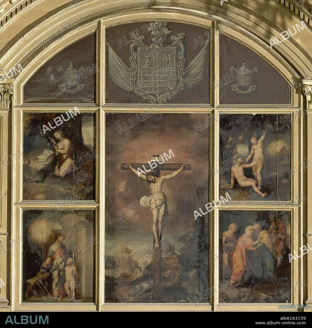 PEDRO CAMPAÑA (1503-1580) PEETER KEMPENEER. RETABLO DE LA CRUCIFIXION DE CRISTO - SIGLO XVI - RENACIMIENTO FLAMENCO.