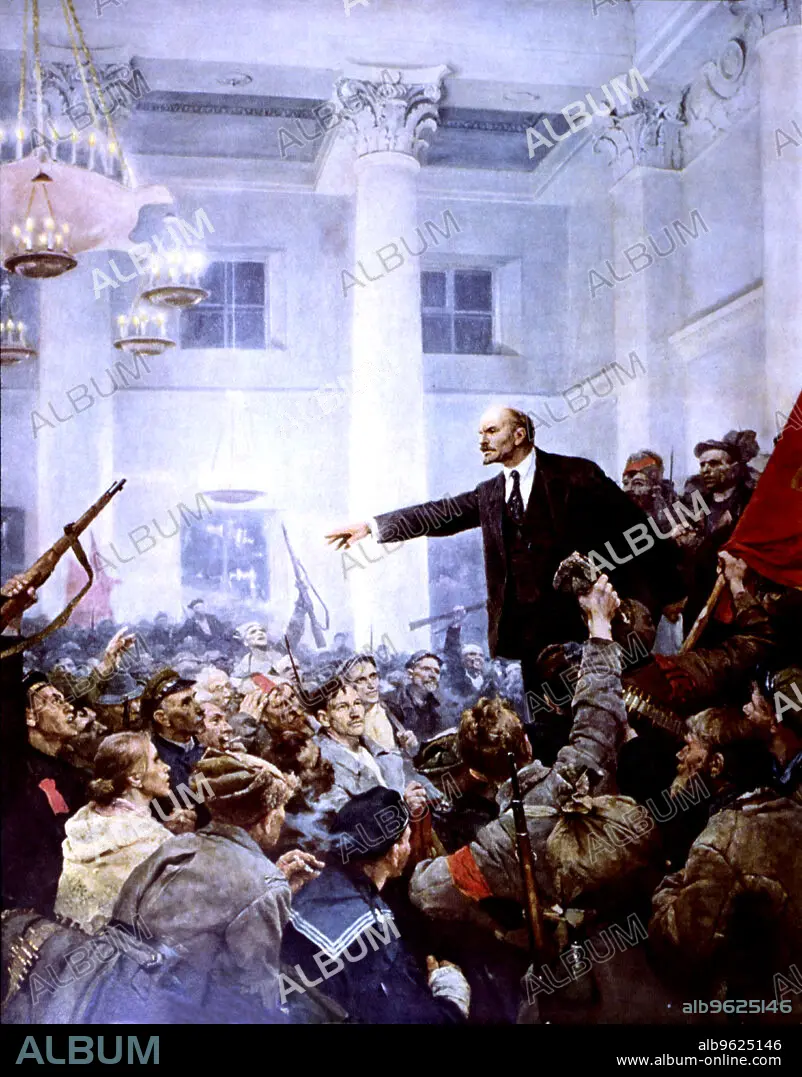 Caption: Vladimir Lenin (Vladimir Ilich Uliasov), known as, 1870 - 1924, Russian revolutionary and statesman, elections in the Room of the Winter Palace of Petroburg.