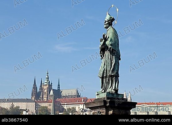 Statue, St. John of Nepomuk, Charles Bridge, Prague, Czech Republic, Europe.