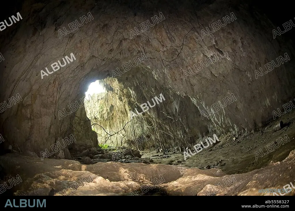 Caption: Inside the cave, known as the Japanese Cave because 5000 Japanese were killed here during World War II, Gua Binsari, Biak, West Papua (Irian Jaya), Indonesia, Asia