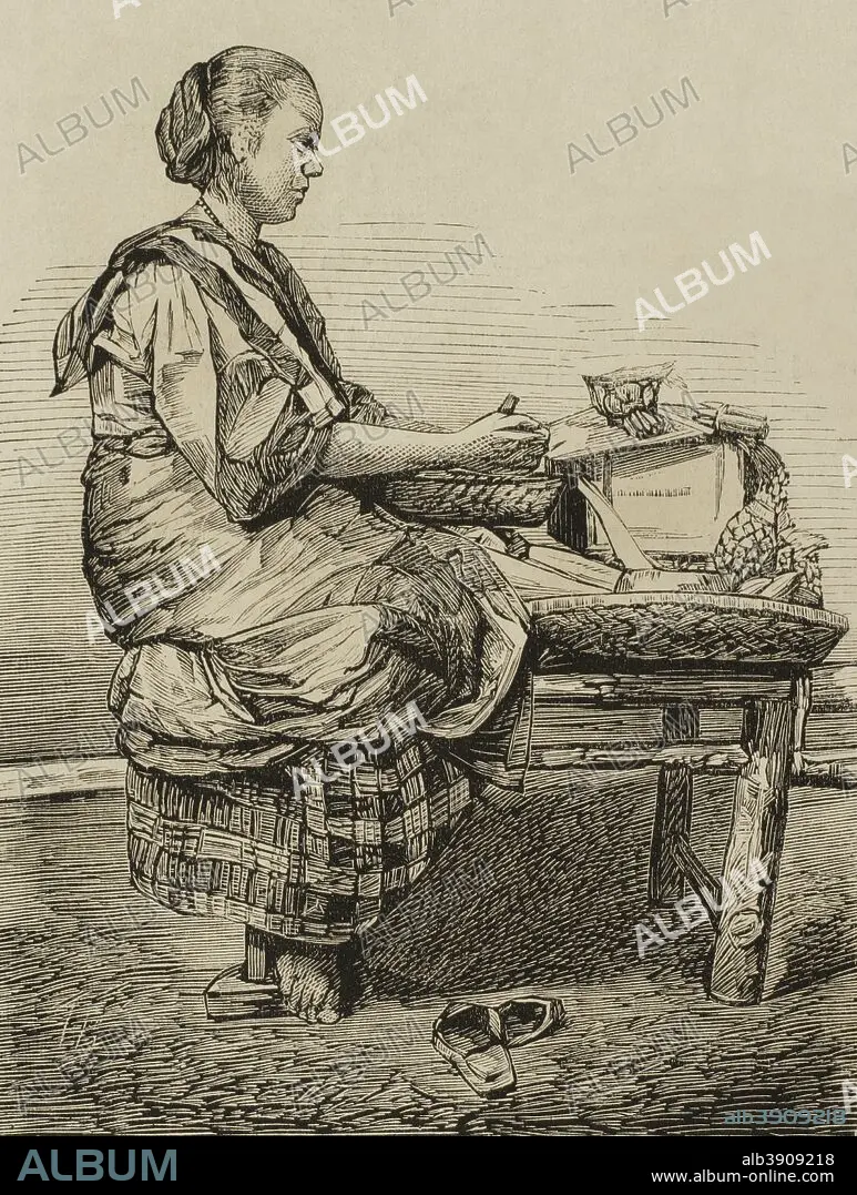 Philippines. Tagalog woman elaborating cigars. Engraving. La ilustracion Espa–ola y Americana. January 30, 1876.