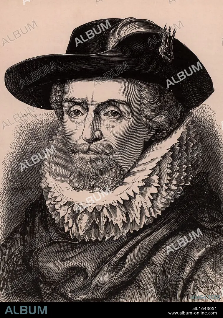 Caption: James VI of Scotland from 1567, and James I of England and Ireland from 1603 (1566-1625). Son of Mary Queen of Scots, he was the first Stuart monarch of the United Kingdom . Wood engraving c1900. (Photo by: Universal History Archive/UIG via Getty Images)