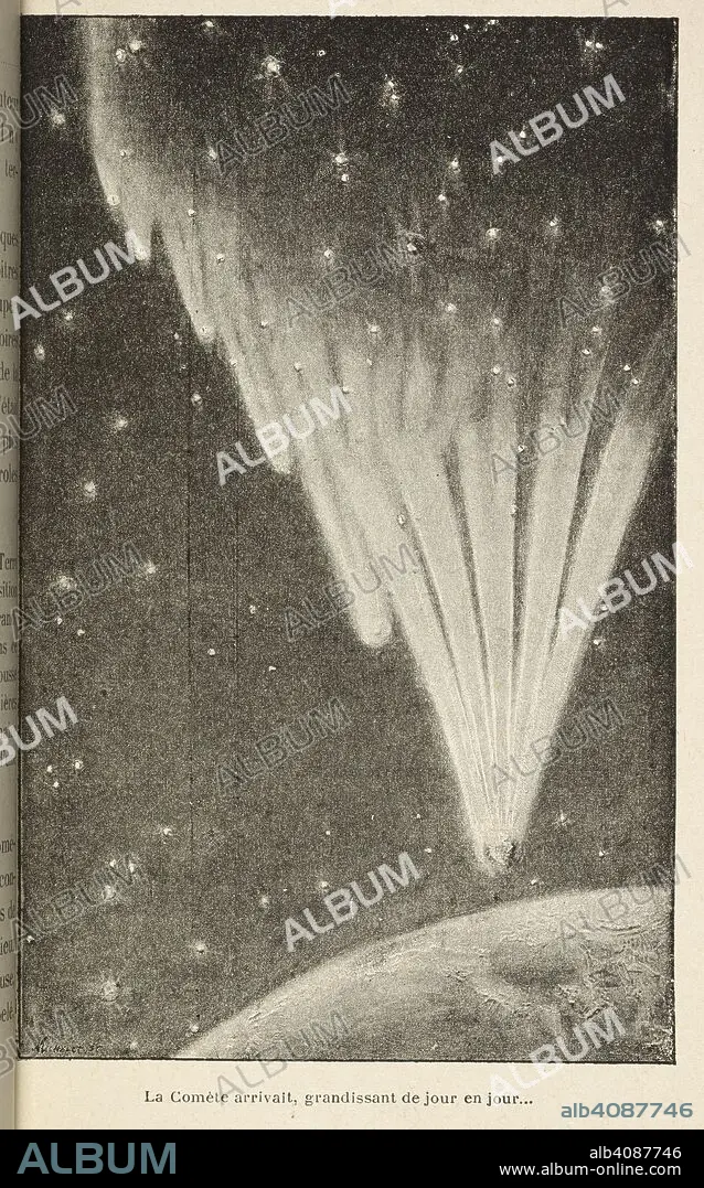 CAMILLE FLAMMARION. Illustration showing a comet about to collide with the planet Earth. La Fin du Monde. (End of the world). Paris, 1894. Source: 012550.f.53 page 43. Language: French.