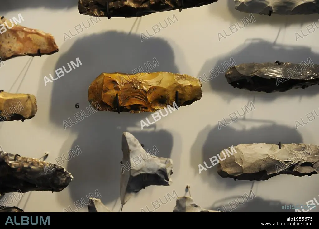 Axes for work and battle. Detail of core axes of the Maglemosian and Kongemose periods. 8500-5500 BC.. National Museum of Denmark. Copenhagen. Denmark.