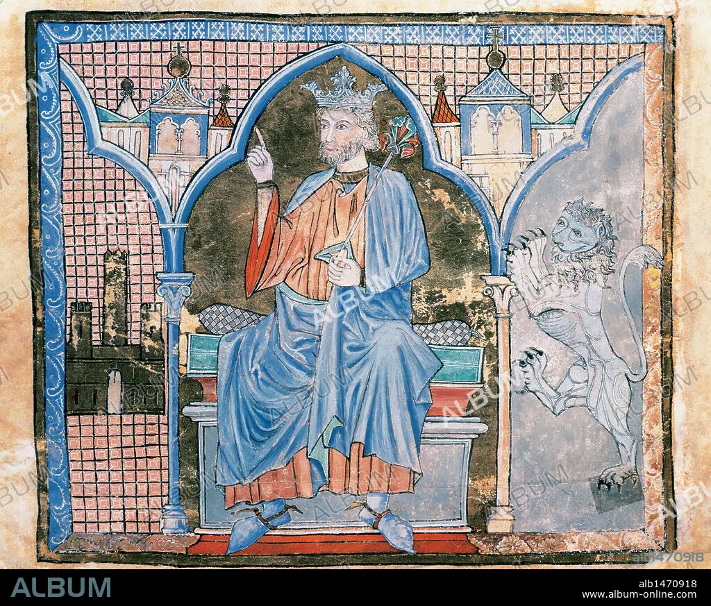 Caption: Ferdinand III of Castile, (1199-1252). King of Castile from 1217 and King of Leon from 1230. Manuscript "Index of Royal Privileges". 13th century. Archive of the Cathedral of Santiago de Compostela. Galicia. Spain.