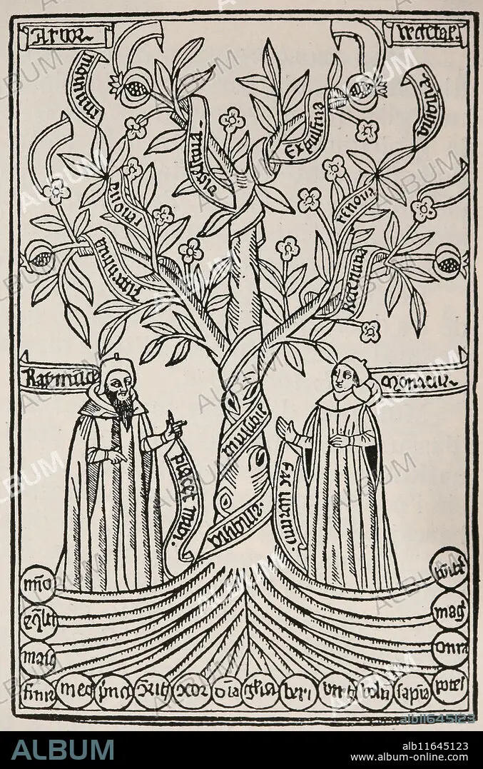 Ramon Llull (1235-1316). Spanish writer. Tree of Science ,1295-1296. Engraving, 1489, Barcelona, Spain.