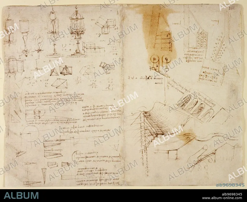 Caption: Notes and drawings by Leonardo da Vinci, early 16th century. Pages from the Notebook of Leonardo da Vinci (1452-1519), showing sketches and diagrams.