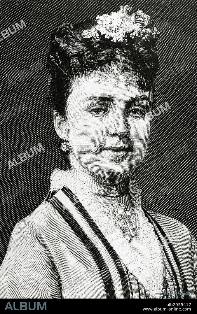 Maria de las Mercedes of Orleans (1860-1878). Queen consort of Spain, wife of Alfonso XII. Portrait. Almanac of the Illustration, 1879. Engraving.