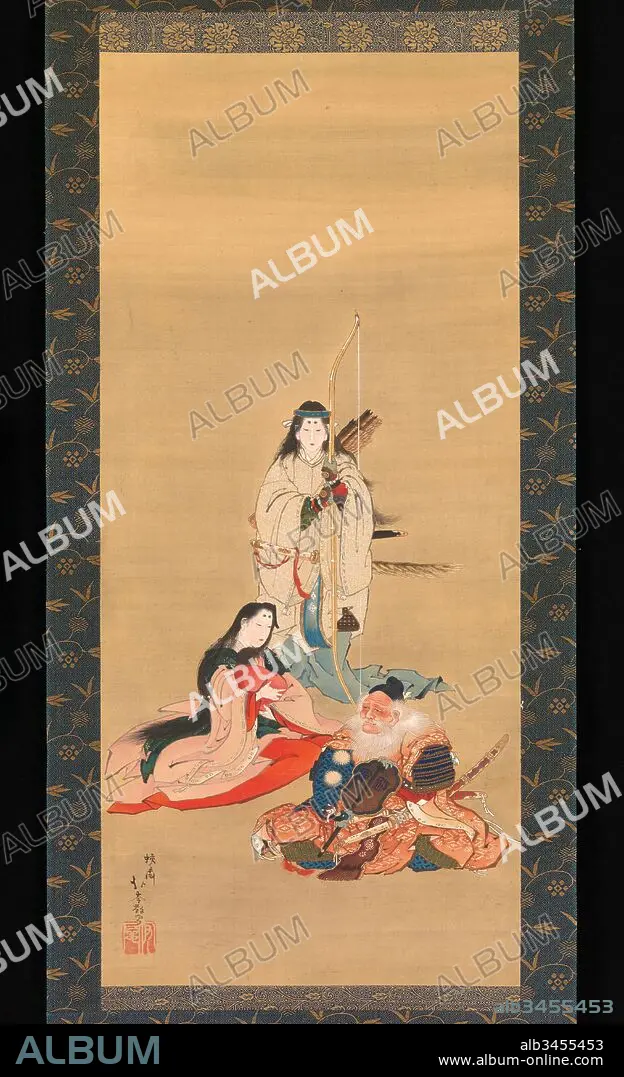 Caption: ????, Empress Jingu, Edo period (1615–1868), 19th century, Japan, Hanging scroll; ink, color, and gold on silk, Image: 28 7/8 × 12 15/16 in. (73.3 × 32.9 cm), Paintings, Kosai Hokushin (Japanese, 1824–1876)